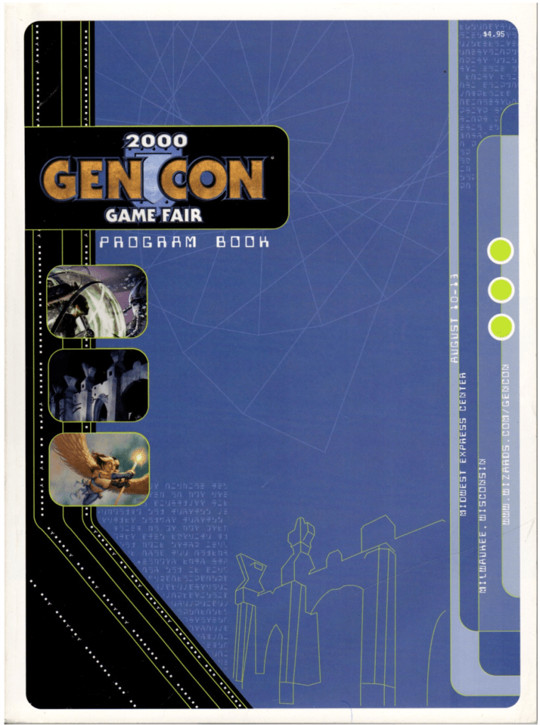 Finally, while we were putting these show notes together, we found the program for GenCon 2000, and it’s an excellent examples of turn-of-the-century TTRPG graphic design: